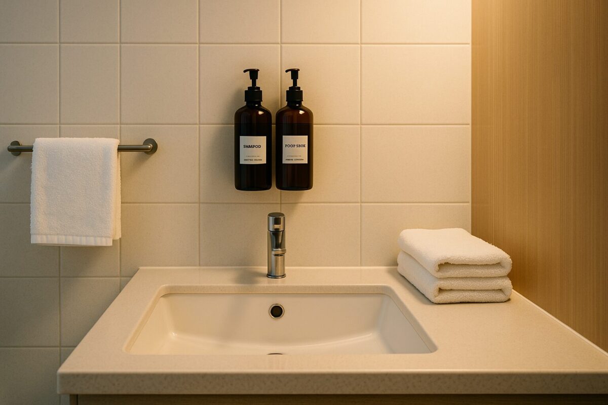 これらは客室に置かない・無料で配らない方向に進んでいて、代わりにバスルームの壁に固定されたディスペンサー式のシャンプーやボディソープが設置されるスタイルが主流になっています。ホテル側としては、補充の手間が減り、ボトルの廃棄も少なくなるので、環境面・コスト面の両方でメリットがあるんですよね。